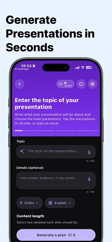 Presentation AI هو مُنشئ عروض تقديمية ومولد PPT مُعتمد على الذكاء الاصطناعي، يُحوّل الأفكار إلى شرائح مُتقنة بسرعة. أنشئ عروضًا تقديمية متوافقة مع PowerPoint، ومشاريع طلابية، وعروض شرائح أعمال مع مُخططات ومحتوى وقوالب شرائح مُولدة تلقائيًا. استخدم أداة الكتابة المُعتمدة على GPT، ومولد العروض التقديمية المُعتمد على الذكاء الاصطناعي، وأنماط التعليم للطلاب والمعلمين لإنشاء شرائح أفضل في دقائق. صدّر، حرّر، وقدّم عروضك التقديمية أينما كنت.
