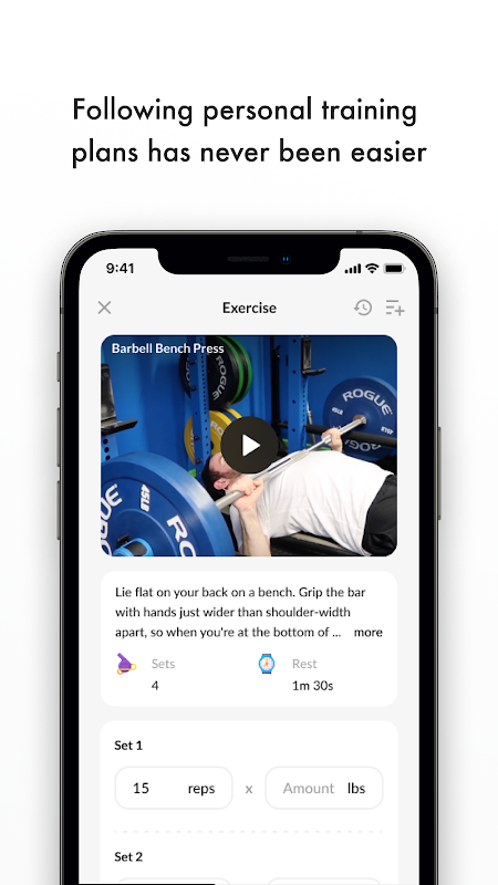 بمجرد اختيار خطة، يمكنك ببساطة التمرير يسارًا بين التمارين للتنقل خلال البرنامج. ستجد أسفل كل شاشة مؤقتًا للتمرين مع إمكانية تسجيل المجموعات والتكرارات والوزن والوقت. يأتي كل تمرين مصحوبًا بصورة وفيديو، ما يضمن لك دقة الأداء في كل تمرين. سيساعدك تسجيل برامج اللياقة البدنية في البرنامج على إعلام مدربك بمدى جهدك لتحقيق أهدافك في اللياقة.