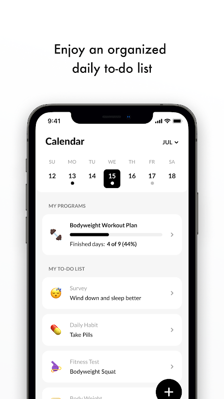 من هناك، مرر فوق علامة تبويب واحدة إلى تقويم اللياقة البدنية الذي سيعمل كمخطط يومي للتمرين. عندما يُحدد لك مدربك خطة لياقة بدنية، أو يطلب منك وزن نفسك، أو تتبع وحدات الماكرو الغذائية اليومية، أو يطلب صورة لتقدمك، ستجد قائمة المهام هنا. بالنقر على تمرين اليوم، ستنتقل مباشرةً إلى أول تمرين في برنامج اللياقة البدنية الخاص بك.