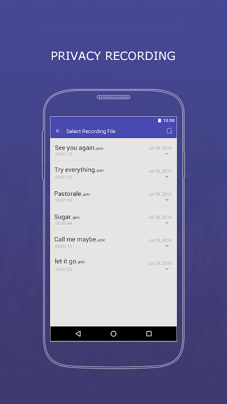 Global Top level security encrypt technology to protect your recording file absolutely safe and no one could find it in your phone.