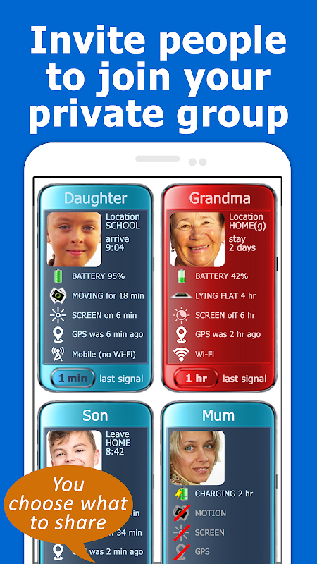 الخصوصية - لن يشارك التطبيق معلوماتك مع أي شخص خارج مجموعتك
