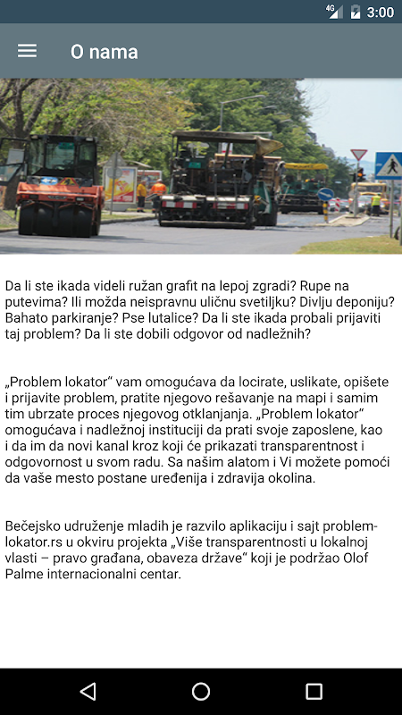 وقد وضعت جمعية Becej الشباب تطبيق الموقع وproblem-lokator.rs ضمن مشروع "مزيد من الشفافية في الحكومة المحلية - حق المواطنين، والتزام الدولة"، والذي كان مدعوما من مركز أولوف بالمه الدولي.
