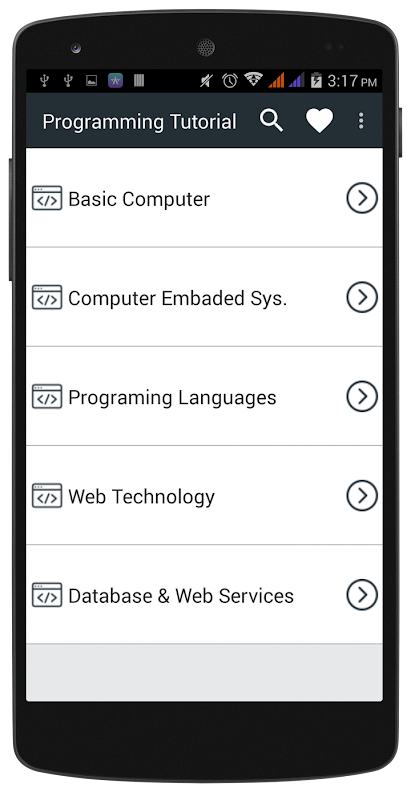 This application helps to learn programming language on your android devices, by referring ready-made programs syntex , theory and interview questions created by programming experts. This application contains more than 30 programming languages like (Android, Angular, Asp.net, C, C#, C++, Clojure, CSS, CSS2, CSS3, Erlang, Groovy, Haskell, HTML5, Java, Javascript, jQuery, JSP, Lisp, Lua, MATLAB, Pascal, Perl, Php, PosgreSQL, PostgreSQL, Python, R, Ruby, Scala, SQL, SVG, Swift, VBScript, XSL-Fo, XSLT etc...)