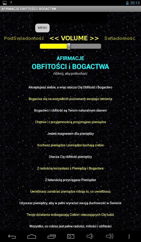 Aktualnie dostępne są afirmacje: