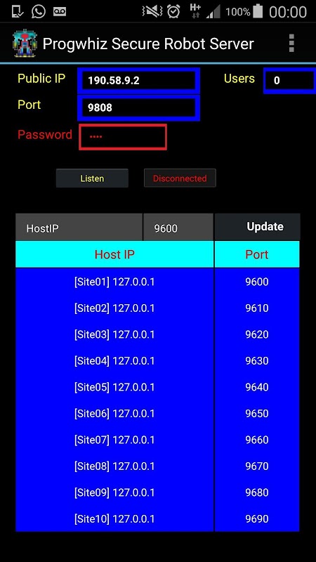 Progwhiz Robotics Server لإدارة Robot Client مع الأجهزة الذكية