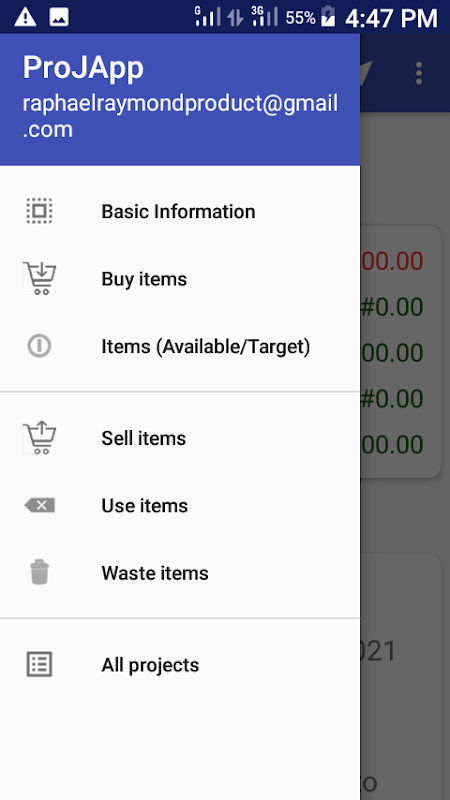 Create a project and do the following in a project: buy items, sell items, remove waste, view products/targets, increase the price of items, edit target, export/import projects, export to excel, text and CSV.