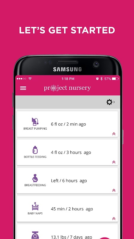 The Project Nursery SmartBand app pairs with your SmartBand to manage parent and baby journals, and view your activity data.