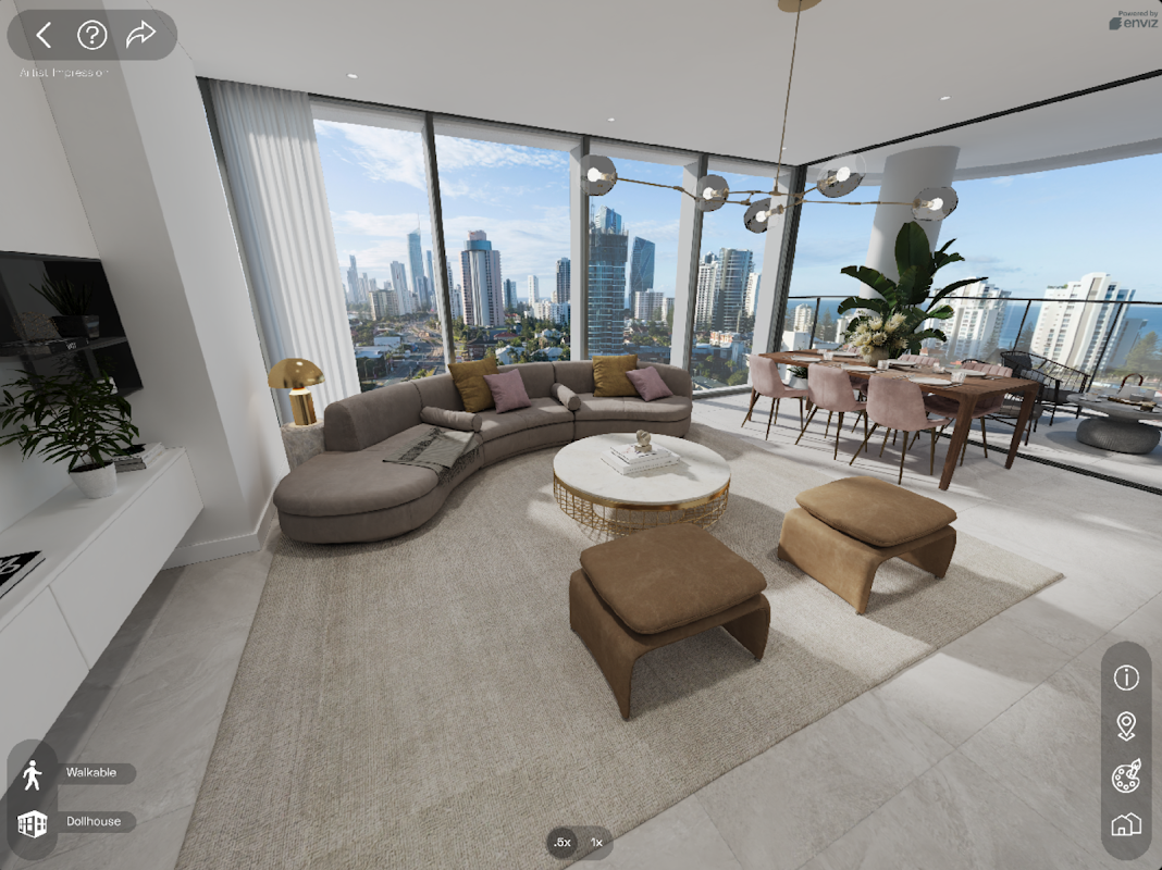 يُمكّنك Projected Living من استكشاف مساحات غامرة مُصممة من مخططات الطوابق أو نماذج العقارات، مما يضمن إيصال رؤيتك بفعالية وإدارتها بسلاسة. يتوفر Projected Living على أي جهاز، ويتيح لك الوصول إلى مشاريعك أينما كنت، مما يُمكّنك من اتخاذ القرارات أثناء التنقل.