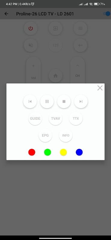 Proline LCD Remote هو تطبيق مليء بالميزات يحول هاتفك الذكي أو جهازك اللوحي إلى جهاز تحكم عن بعد متعدد الاستخدامات. مع شاشة Proline LCD، تصبح إدارة التلفزيون والأجهزة الإلكترونية الأخرى أمرًا سهلاً للغاية، حيث تقدم نفس الوظيفة التي يوفرها جهاز التحكم عن بعد الفعلي مع الراحة الإضافية التي توفرها التكنولوجيا الرقمية. سواء كنت في المنزل أو أثناء التنقل، فإن شاشة Proline LCD تبقيك على اتصال بأجهزتك.