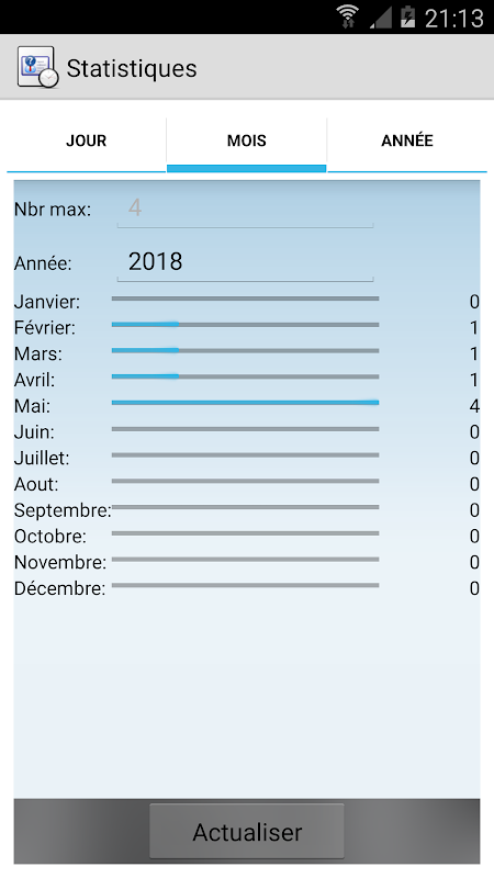 مع وظيفة إحصاءات، يمكنك اتباع اختلاف يوميا، شهريا أو سنويا للمناسبات الخاصة بك ومقارنتها مع السنوات السابقة.