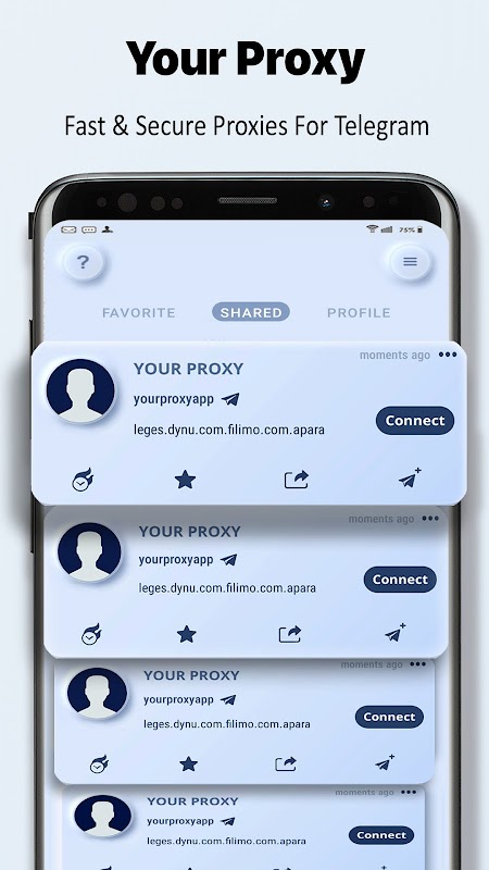 Your Proxy هو تطبيق بسيط وقوي يتيح لك الحصول على اتصال آمن وسريع بـ Telegram باستخدام وكلاء MTProto موثوق.