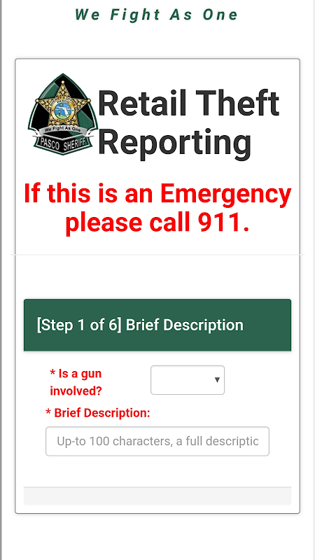 This app can be used by retailers in Pasco County to report incidents. This is not an alternative to 911, In case of emergency, please call 911 immediately.