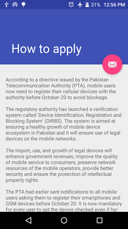 معلومات PTA Mobile Verification APK