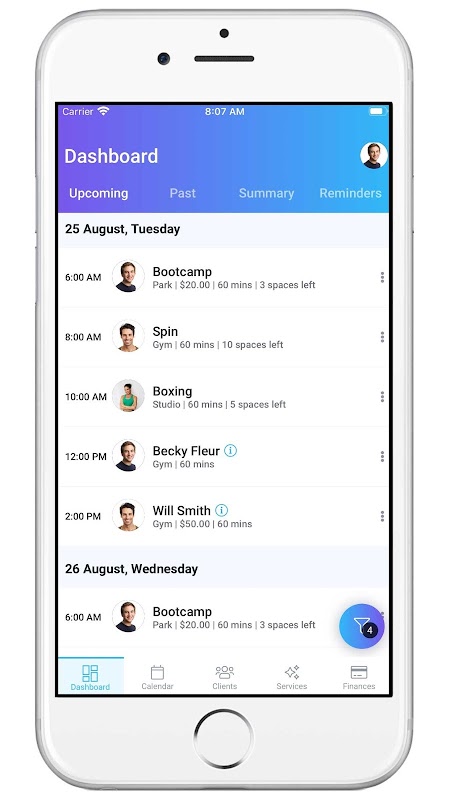يعمل برنامج PTminder على تبسيط مهامك اليومية ، مما يوفر لك الوقت حتى تتمكن من تنمية أعمال اللياقة البدنية الخاصة بك. ويشمل: