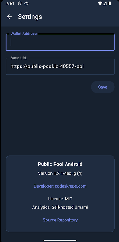 راقب نشاط تعدين العملات المشفرة الخاص بك على Public Pool مباشرة من جهاز Android الخاص بك. تتبع معدل التجزئة والعمال وتفاصيل المحفظة أثناء التنقل.