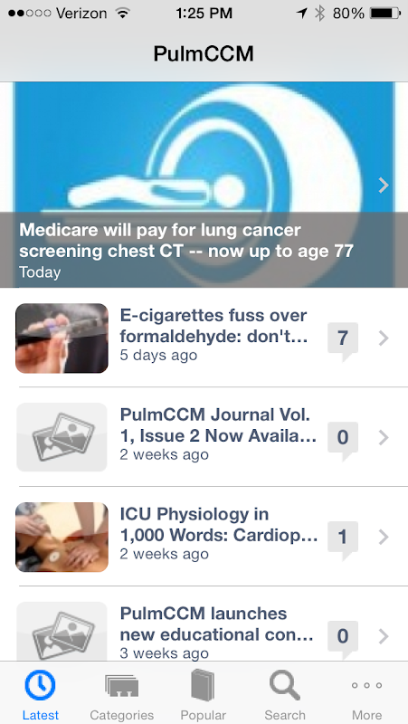Stay up-to-date the easy way in pulmonary and critical care medicine, and upgrade the care you give your patients. PulmCCM's continuous literature review helps you keep up with the standard of care for respiratory conditions including COPD, asthma, pulmonary embolism, pulmonary fibrosis, and pulmonary hypertension, and critical illness including ARDS, sepsis, and septic shock.