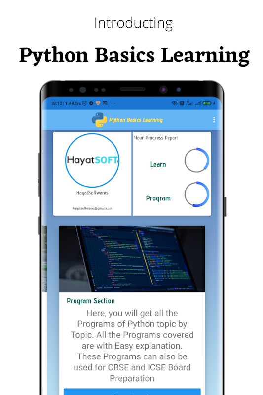 Python for CBSE is an App for the students of Class 11 and Class 12 who wants to Learn Programming efficiently. Python as a Programming language is a great choice to start with, because of its easy syntax and good build-in functions. We have embedded about 200 + Programs with easy explanation, so students do not find any difficulty to find the flow of the Program