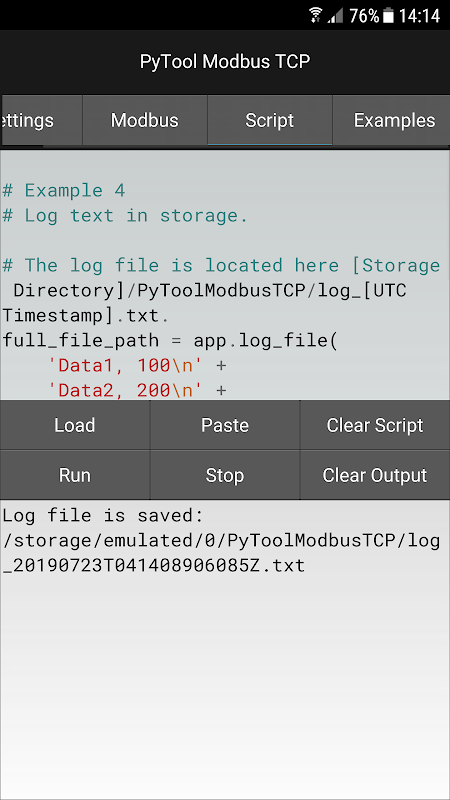 من خلال القدرة على تشغيل نص برمجي Python مخصص ، يمكن لـ PyTool Modbus TCP قراءة وتحليل أي بيانات مستلمة وعرضها بالطريقة التي تريدها وحتى التصرف وفقًا لذلك عند الحاجة.