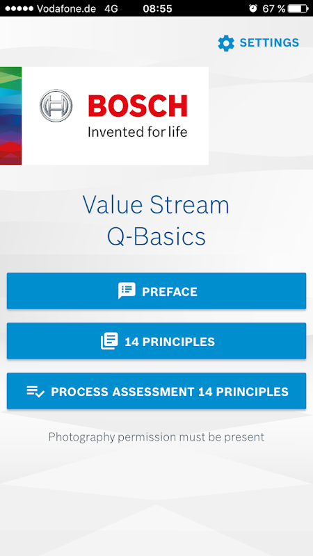 تطبيق Q-Basics2go App هو تطبيق تم تصميمه حديثًا لتحسين وضع المعايير في سياق تدفق القيمة. مع هذا التطبيق ، يتم توفير إمكانية جديدة لجعل عملك أكثر كفاءة. يدعمك تطبيق Q-Basics2go في تدوين الملاحظات والتعليقات على مبادئ 14Q المعنية.