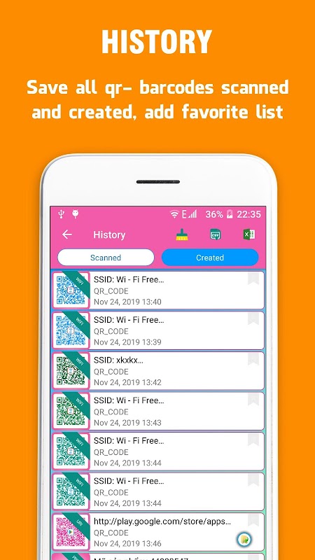 + تصدير قائمة التعليمات البرمجية بعد المسح الضوئي إلى ملف Excecl أو CSV.