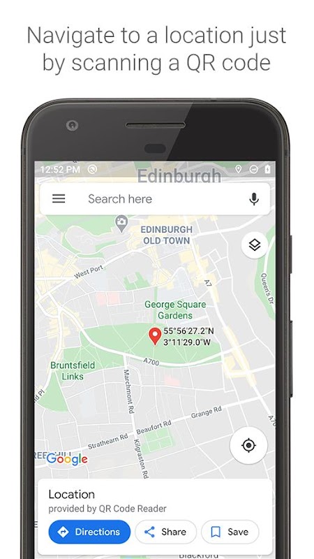 • افتح الخرائط للانتقال إلى موقع مضمن في رمز الاستجابة السريعة