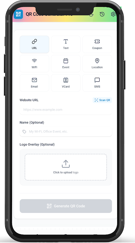 أنشئ رموز QR احترافية، وخصصها، وشاركها في ثوانٍ مع تطبيق QR Code Generator Pro.