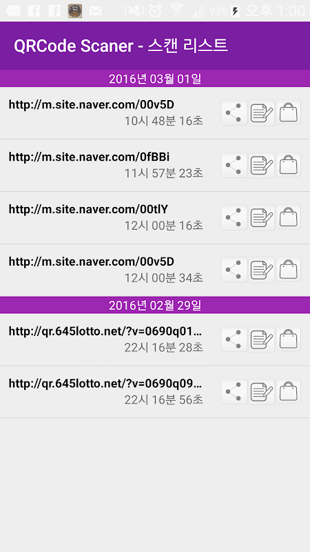 (한번 스캔한 QR 코드는 History(보관함)에 자동저장!!)