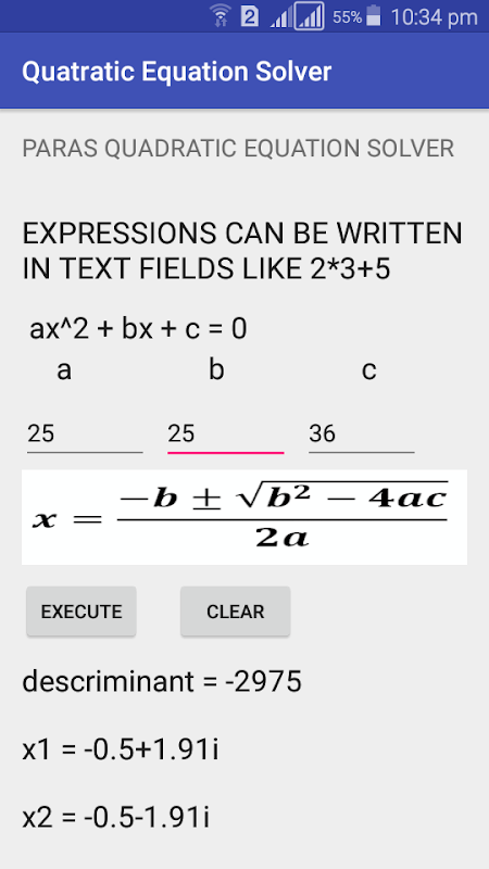 وهذا يمكن تطبيق حل جذور معادلة من الدرجة الثانية ومكعب.