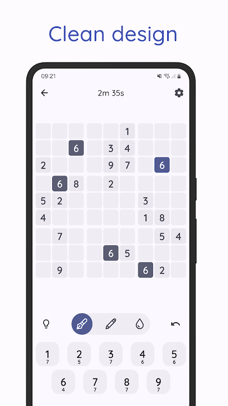 اختر أحد سمات المواد المتوفرة أو دع Qudoku يستخدم ألوان جهازك المميزة. بالطبع، هناك أيضًا الوضع الداكن!