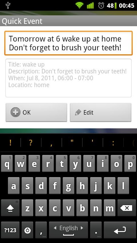Works exactly like Google's Quick Add feature so you don't need to learn any new language in order to use it.