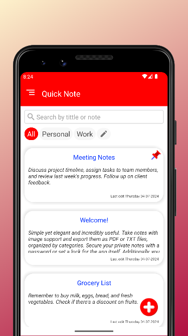 Quick Note Notepad & Notebook هو رفيقك المثالي لجميع احتياجاتك في تدوين الملاحظات. سواء كنت كاتبًا محترفًا أو أي شخص يحتاج إلى البقاء منظمًا، فإن Quick Note - Secure Notebook يقدم الحل الأمثل.