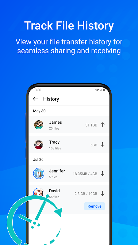مع تطبيقنا ، لم تكن مشاركة الملفات أسهل من أي وقت مضى. شارك التطبيقات وأرسل المستندات المهمة وانقل الذكريات العزيزة التي تم التقاطها في مقاطع الفيديو والصور ، كل ذلك في نظام أساسي ذكي وسهل الاستخدام.