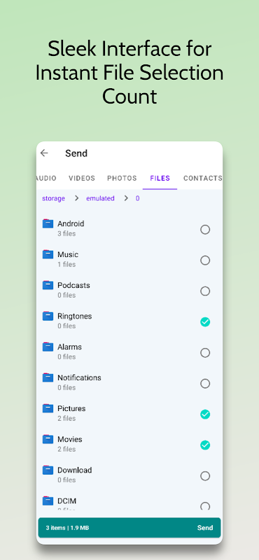 3. إرسال الملفات من أي مكان: باستخدام تطبيق نقل الملفات الخاص بنا، يمكنك إرسال الملفات