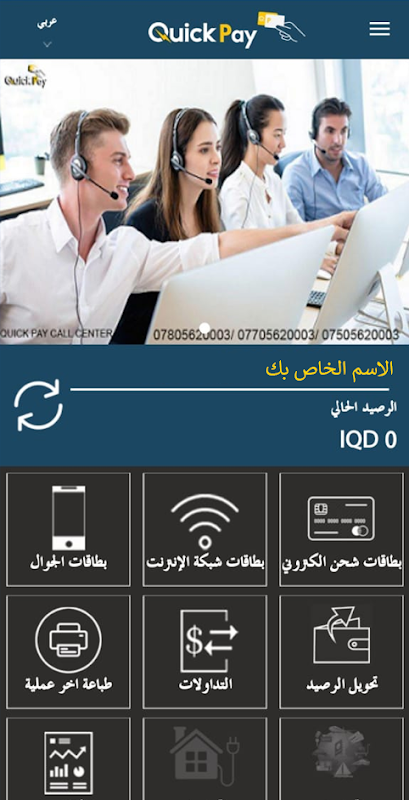 تطبيق QuickPay الذي يمكّن التجار من إدارة مخزونهم. يتيح التطبيق للمستخدمين بيع القسائم ، والتحقق من الرصيد ، وطباعة القسائم ، وعرض التقارير والمزيد.
