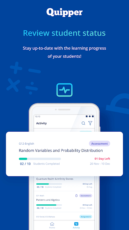 Quipper for Educators هو تطبيق مجاني مصمم خصيصًا لمعلمي Masterclass ومدربي Masterclass ومعلمي مدرسة Quipper. باستخدام هذا التطبيق ، يمكن للمعلمين مراقبة نشاط الطلاب بسهولة والبقاء على اطلاع دائم بتقدم التعلم.