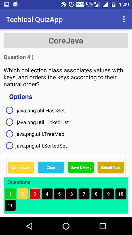 This app help you to carry Core Java, Advanced Java,ANDROID, and Data Structure programming questions in your android phone. This app has a very simple user interface and will be soon available tricky questions for all quiz.
