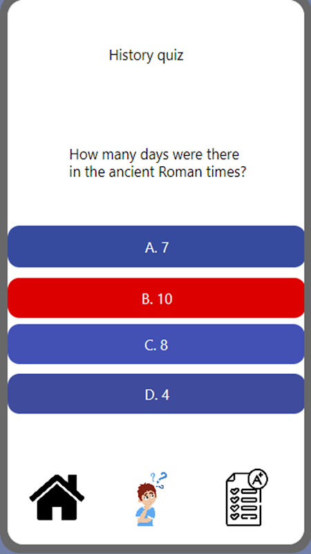 تطبيق مسابقة ويحتوي على 4 فئات الجيولوجيا والعلوم والتاريخ والرياضة. عند النقر فوق زر إذا كان صحيحا تحصل على نقطة واحدة.