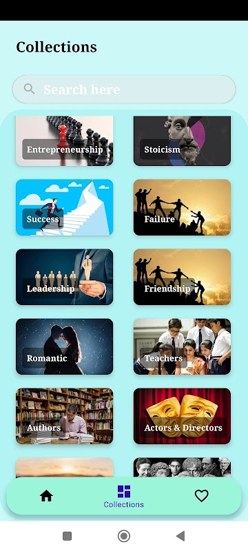 2. المجموعات المخصصة: قم بإنشاء وتنظيم مجموعات الاقتباسات الخاصة بك بناءً على اهتماماتك أو حالتك المزاجية أو موضوعات معينة. قم بتخصيص كتاب الاقتباس الخاص بك ليعكس ذوقك وتفضيلاتك الفريدة.