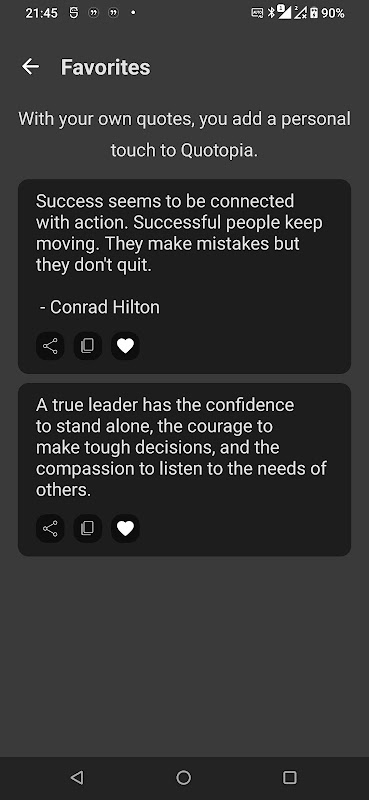 تقدم Quotopia تجربة سلسة وسهلة الاستخدام. يمكنك بسهولة استكشاف مكتبتنا الواسعة من الاقتباسات، مما يسمح لك بالعثور على الكلمات المثالية لأي مناسبة. سواء كنت بحاجة إلى جرعة يومية من التحفيز، أو اقتباس لإضفاء البهجة على يومك، أو الحكمة لتوجيه قراراتك، فإن Quotopia ستلبي احتياجاتك.
