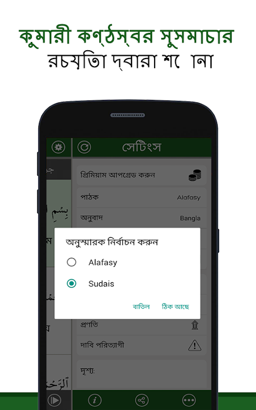 تم تصميم القرآن البنغالي 📖 مع الترجمة البنغالية خصيصًا للناطقين باللغة البنغالية. الغرض الرئيسي من تطبيق Bangla Quran 🕋 هو توفير المعرفة الإسلامية. تطبيق القرآن الكامل بالخط العربي مع الترجمة البنغالية والمعنى. العب واستمع إلى القرآن البنغالية مع قراء متعددين. تم تصميم تطبيق Quran Bangla لتسهيل المتحدثين الأصليين في بنغلاديش بالتعاليم الإلهية للقرآن. تم تضمين تطبيق Quran Majeed Bangla هذا مع ترجمة أصلية وتحويل صوتي وتلاوة صوتية لكامل 114 سورة من القرآن الكريم مع قراء متعددين.