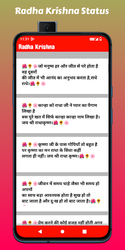 تم تصميم تطبيق Radha Krishna Shayari و Status و Shlok و Anmol Vachan و Vachan و Aarti للأشخاص المتدينين الذين لديهم إيمان حقيقي باللورد كريشناجي.