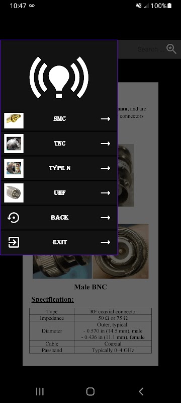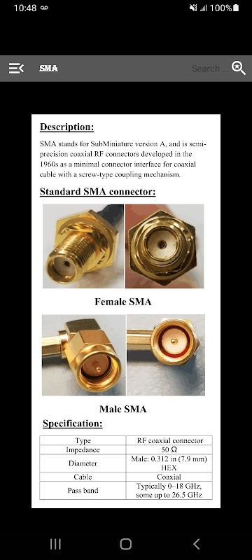 تم تصميم هذا التطبيق لمساعدة الأشخاص الذين يعملون في مجال الترددات اللاسلكية ، على معرفة نوع الموصل الذي يستخدمونه بسرعة. يقدم فريقنا أيضًا بعض المقدمة القصيرة وحالة تردد العمل القياسية لكل موصل. نحن لسنا مصنعون ، ومتحمسون فقط في مهنة الترددات اللاسلكية.