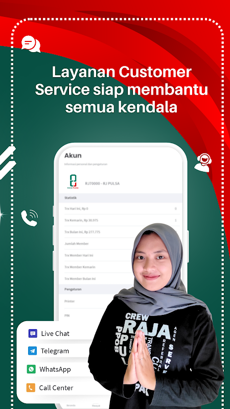 يأتي Raja Pulsa مزودًا بخادم يعمل 24 ساعة يوميًا، وهو جاهز لمساعدتك في إجراء المعاملات في أي وقت، حتى في الليل.