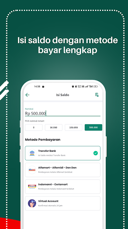 بفضل واجهة بسيطة وسهلة الاستخدام، يتيح لك Raja Pulsa إجراء العديد من المعاملات بسرعة ودون مشاكل.