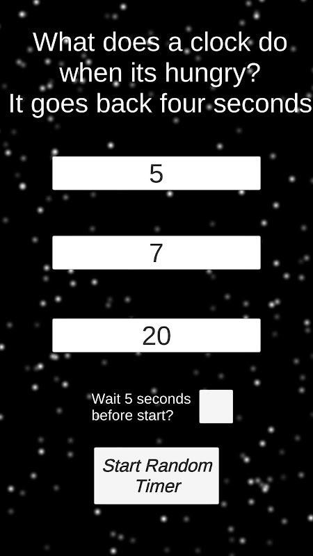 Choose if you want to wait five seconds before the timer will begin.