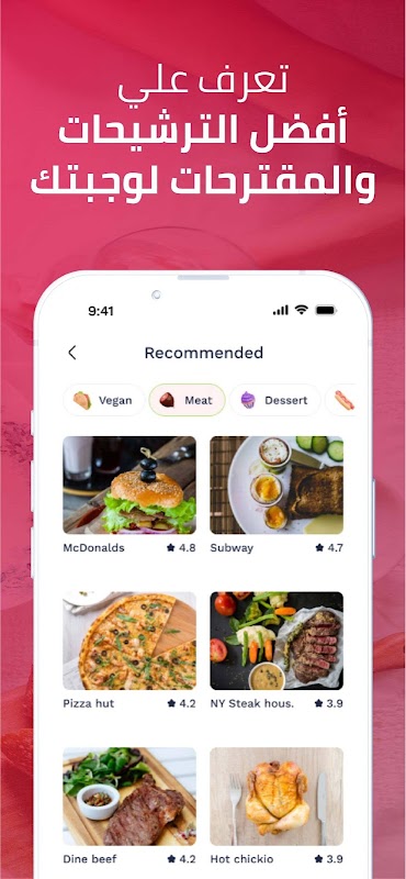 تطبيق الطعام: التصفح والطلب والدفع والتتبع والدردشة مع السائقين لتناول الطعام.