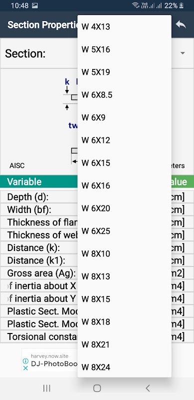 This magnificent app includes tables with all the international steel sections, with their dimensions, properties, classification, resistance and buckling resistance values according to Eurocode 3, EN1993-1-1:2005. The tables are extended to non-standard steel sections and welded section with dimensions given from the user.
