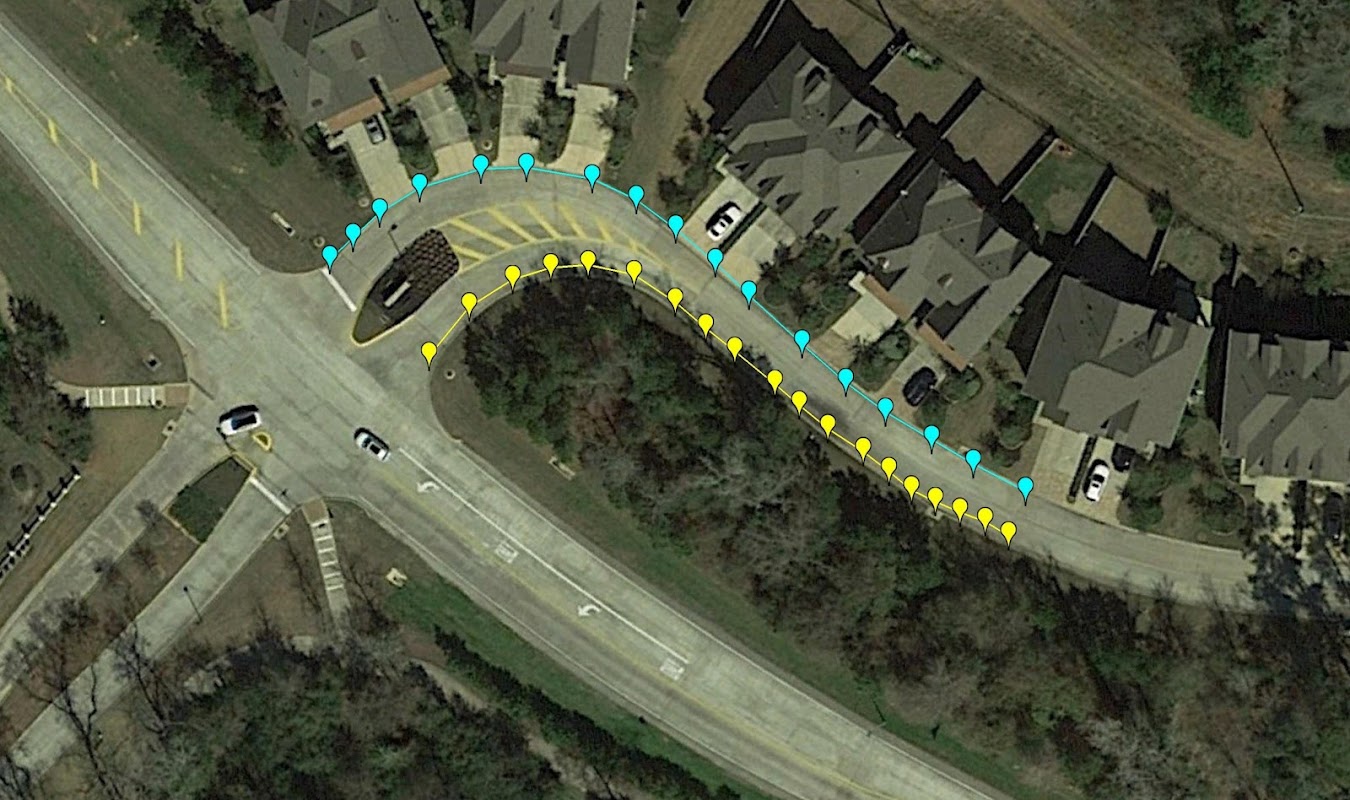 في كل مرة يتم فيها إجراء قياس المسح باستخدام محدد موقع مقترن ، تتم إضافته تلقائيًا إلى خريطة خرائط Google. يتم ترميز المسارات والأيقونات المساعدة بالألوان ، وذلك باستخدام ألوان الأداة القياسية ، ومتوافقة مع American Public Works Association