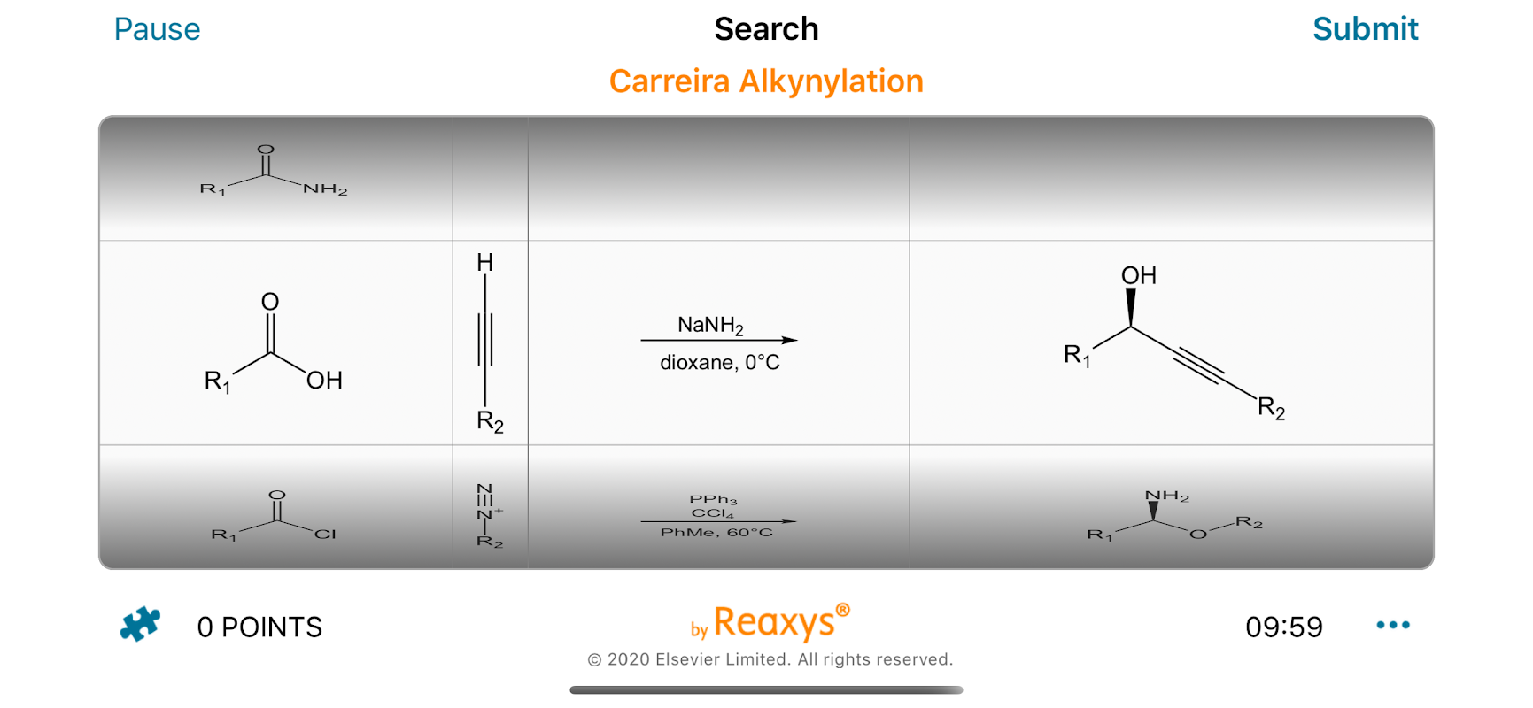 تم تصميمه وتطويره بالتشاور مع البروفيسور الدكتور إريك إم كاريرا من ETH Zürich، ويغطي التطبيق الآن أكثر من 1266 تفاعلًا كيميائيًا محددًا. لقد ساعد البروفيسور كاريرا في ضمان حصولنا على جميع التفاعلات الأساسية التي يجب أن تكون جزءًا من مجموعة أدوات كل كيميائي: بدءًا من التفاعلات الأكثر شهرة وحتى التفاعلات التي يتذكرها الفائزون بجائزة نوبل فقط!