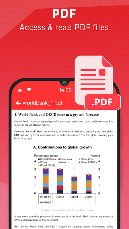 قراءة المستندات في مكان واحد: قم بالوصول إلى ملفات PDF و .docx و .xls و .ppt والملفات النصية العادية وقراءتها - كل ذلك داخل تطبيق واحد ، وداعًا للتنقل بين البرامج المختلفة. إنه قارئ PDF ولكنه أيضًا عارض Word DOC.
